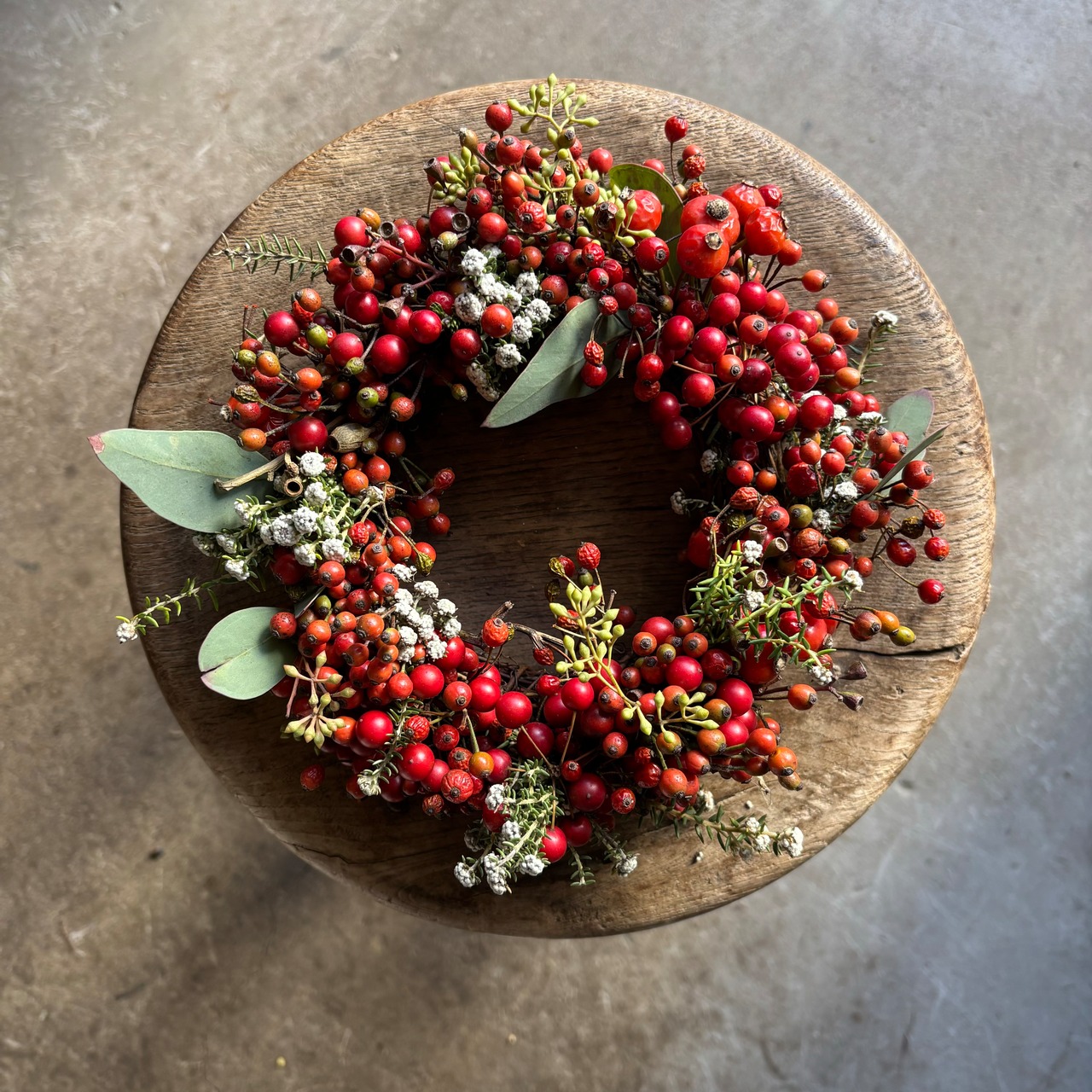 ローズヒップ、サンキライ、野薔薇の実を使ったリース