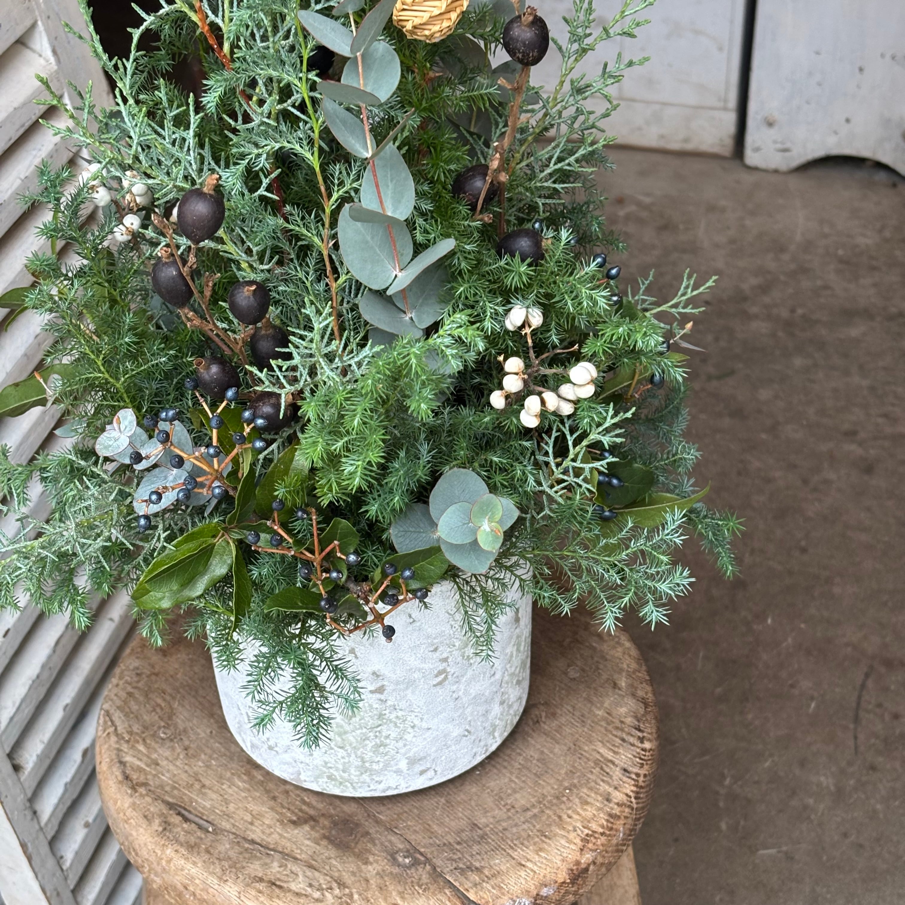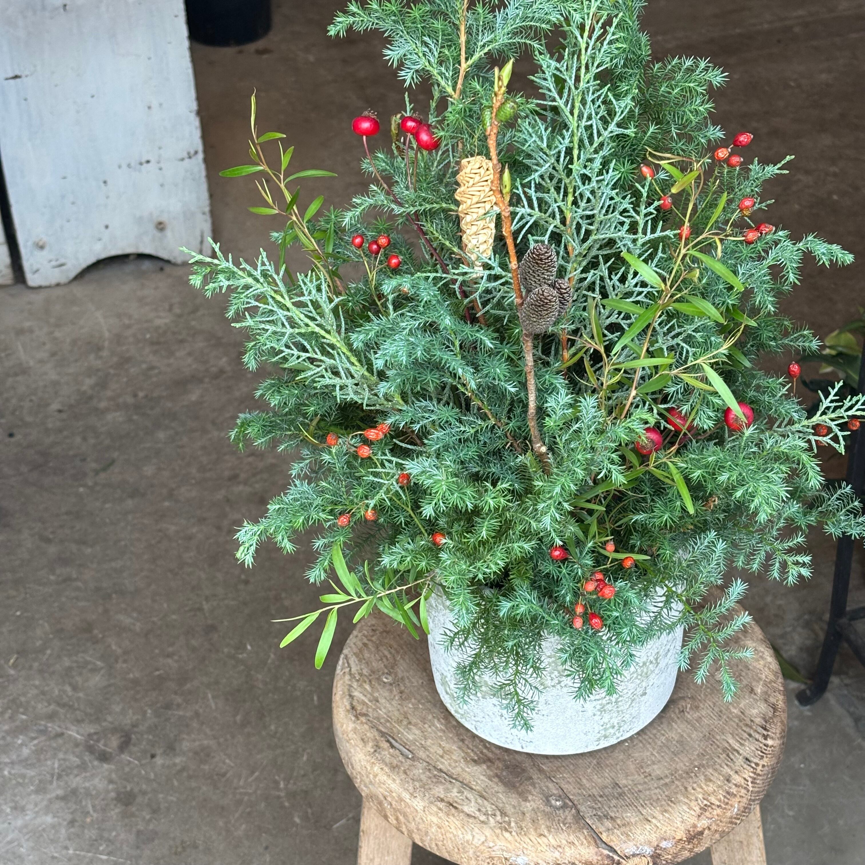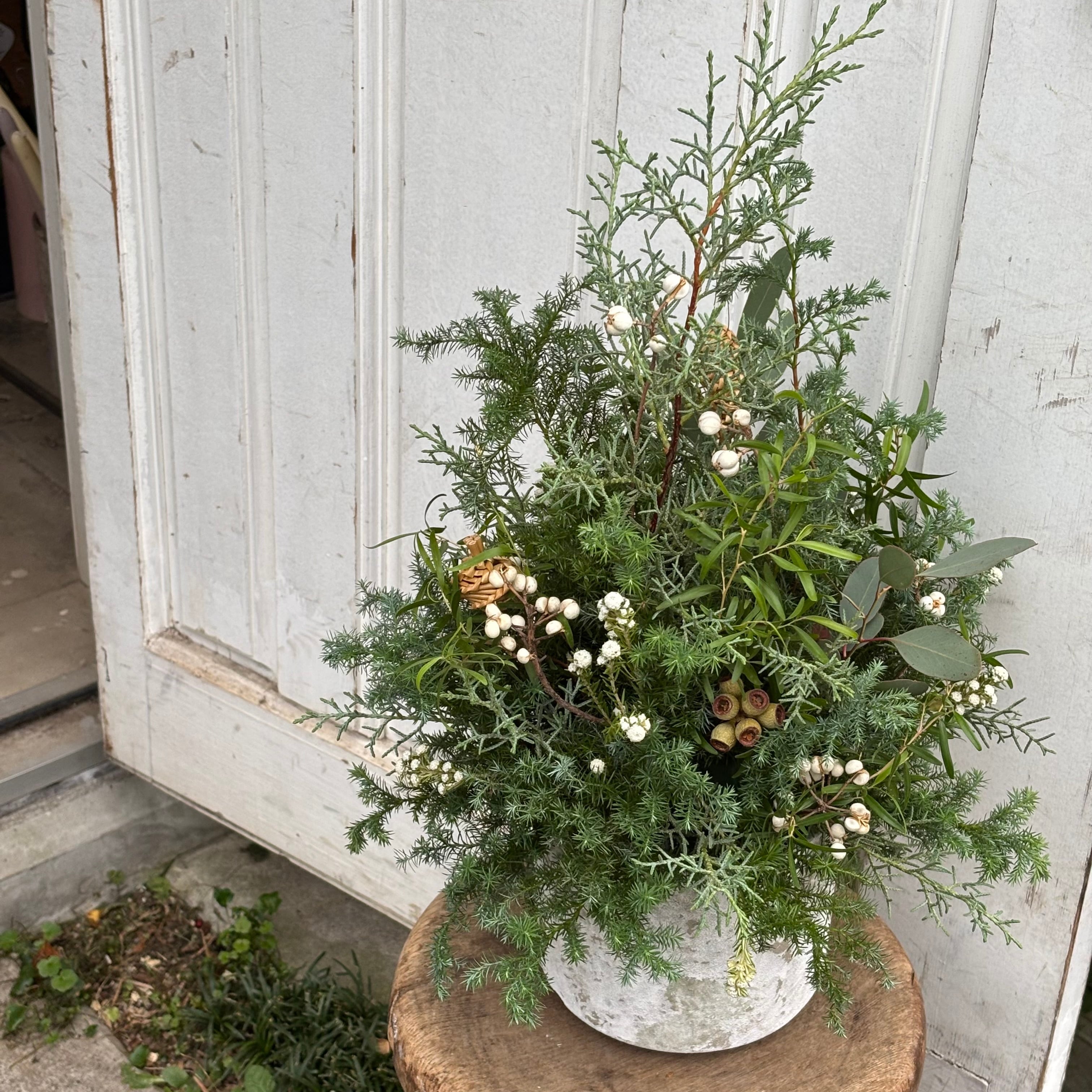 針葉樹と実物のツリーアレンジメント