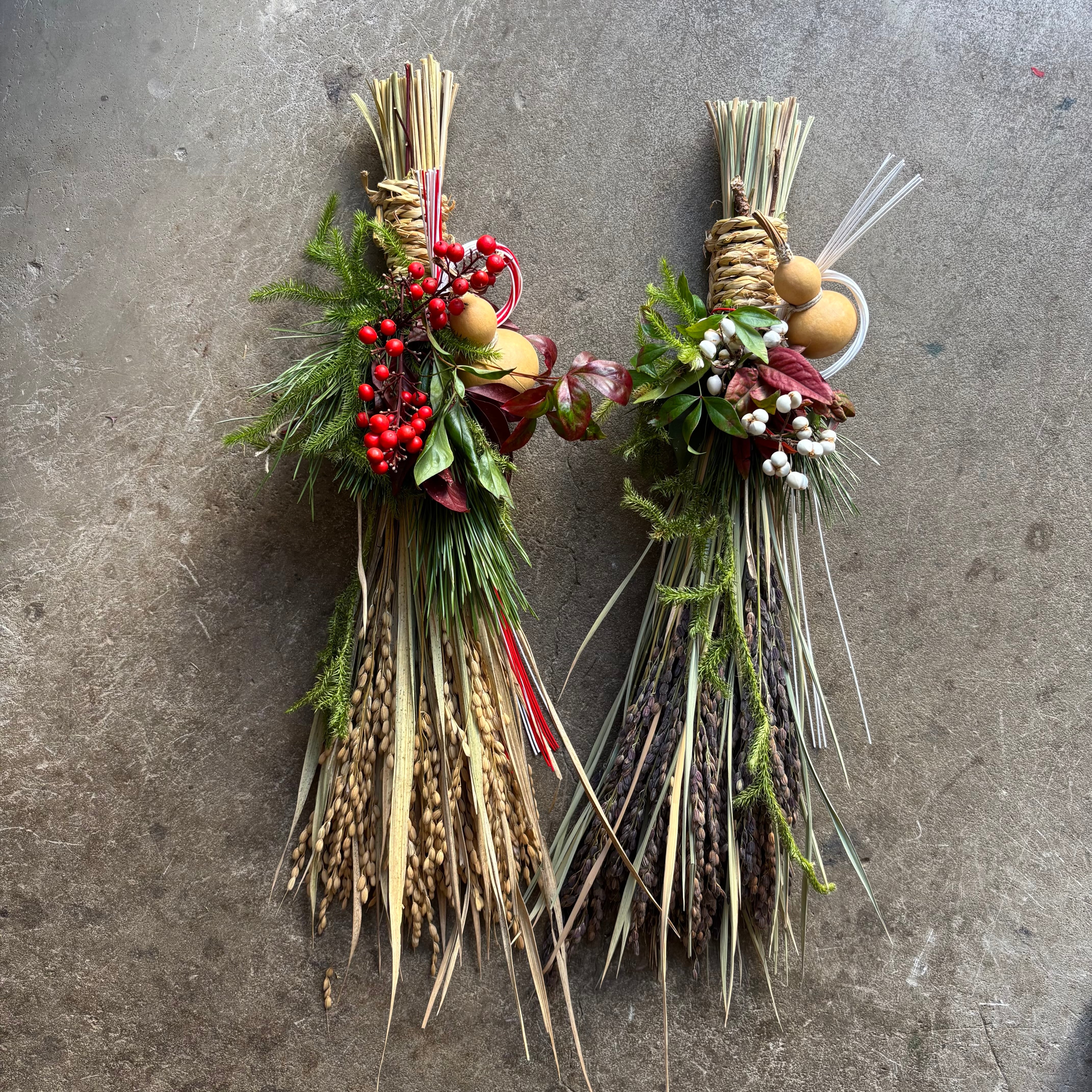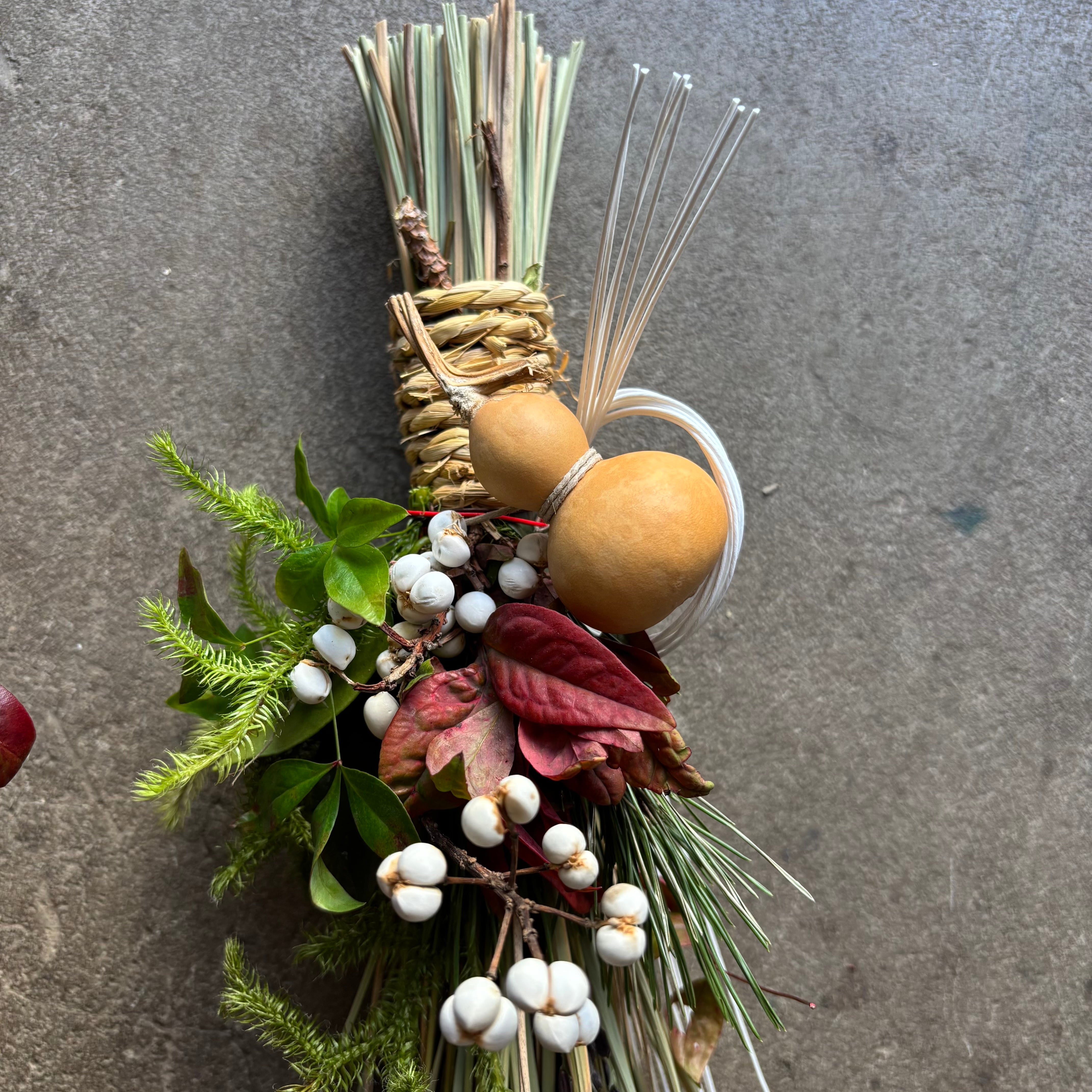 ・material : 稲穂、松、ヒカゲノカズラ、瓢箪、実物、水引きなど