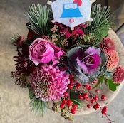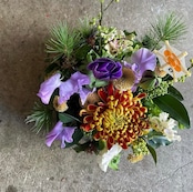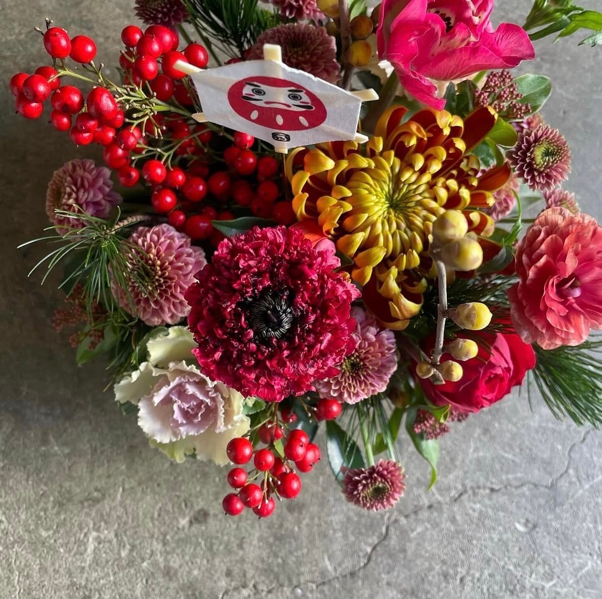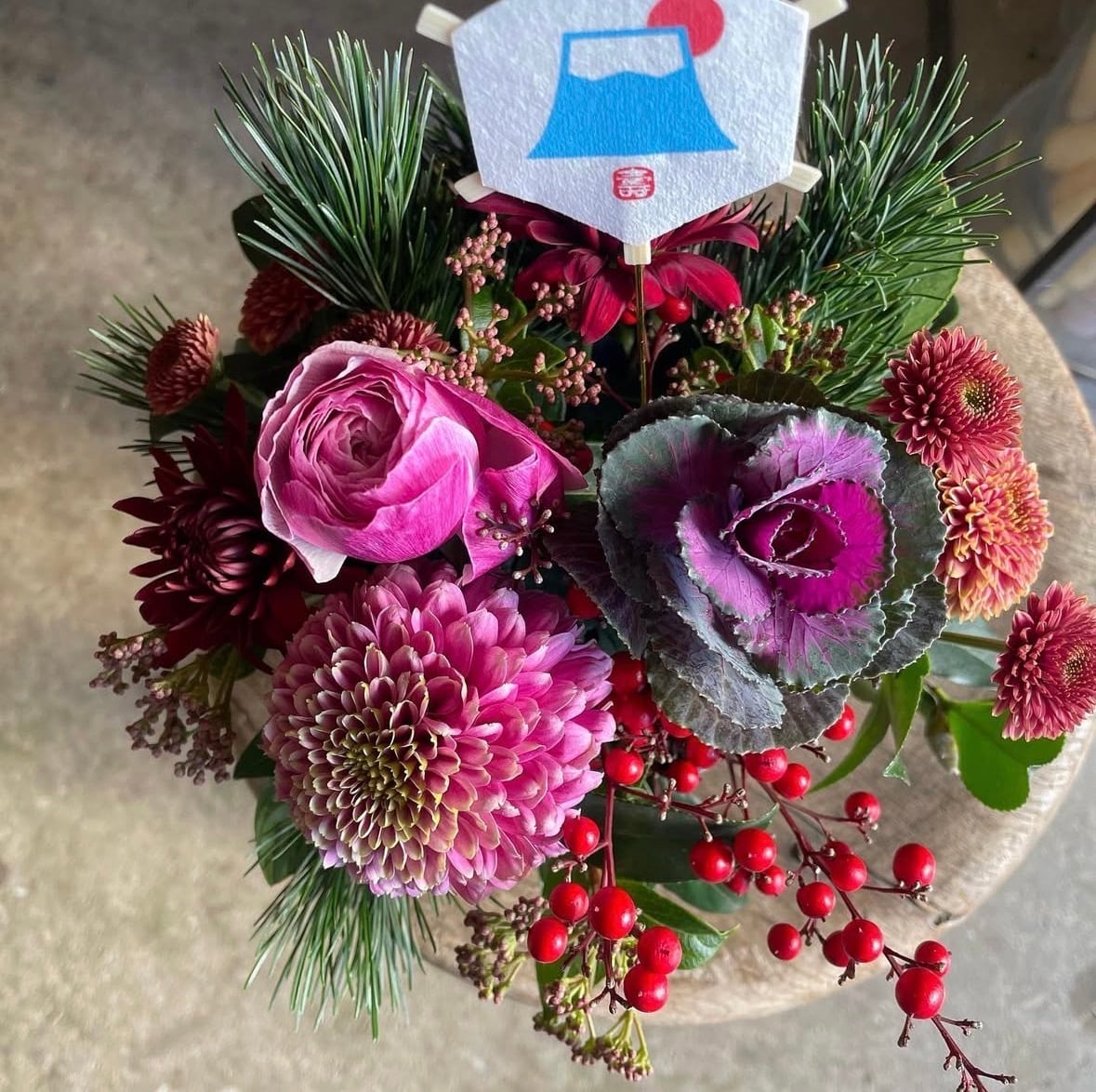 ・material 菊、葉牡丹、南天の実、松、ラナンキュラス、ガーベラ など